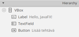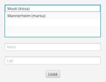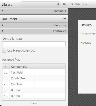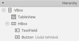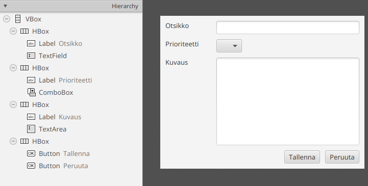 kategorioille ja niitä vastaavat GUI-oliot.