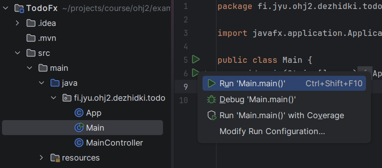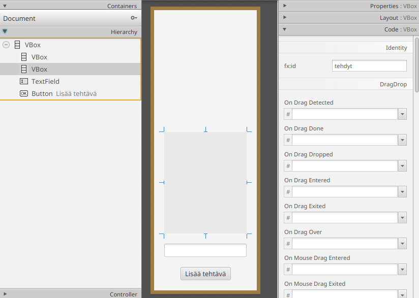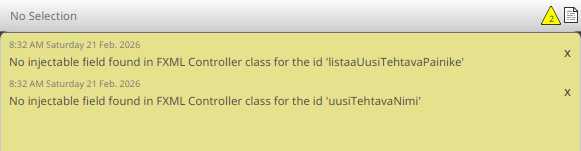 Oletetaan, että meillä on MainController-luokassa attribuutit tehtäville ja