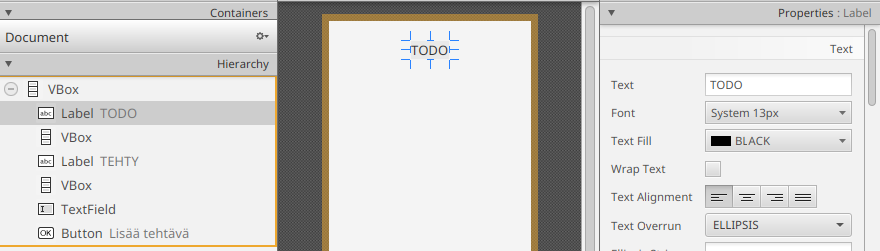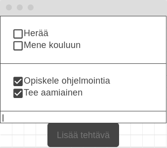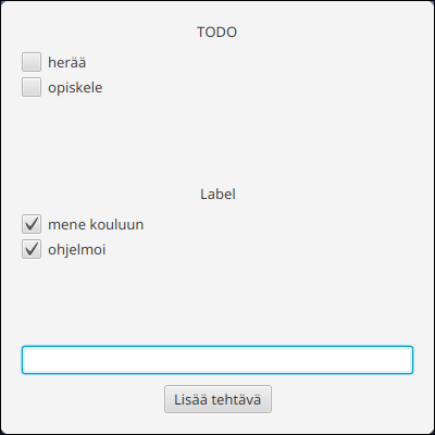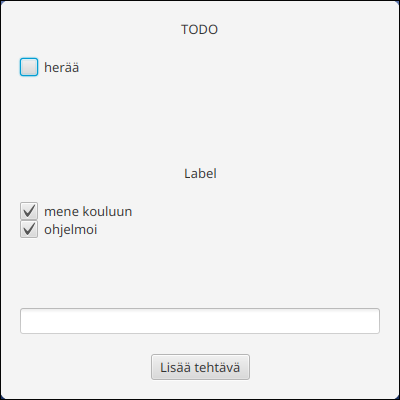 Lisätään vielä tehtävät ja kategoriat UI-olioihin.