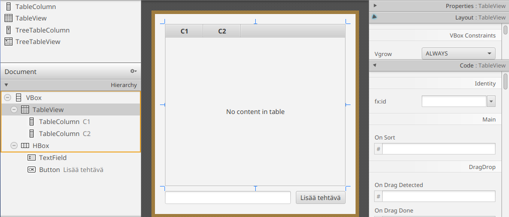 tehtavatTable.getColumns().addAll(otsikkoColumn, kategoriaColumn);
