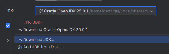 Avautuneesta ikkunasta klikkaa JDK-alasvetolaatikkoa ja valitse Download JDK... -painike: