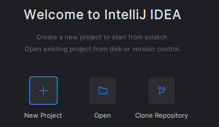 Avaa IntelliJ IDEA ja odota, kunnes pääset Welcome to IntelliJ IDEA -näkymään.